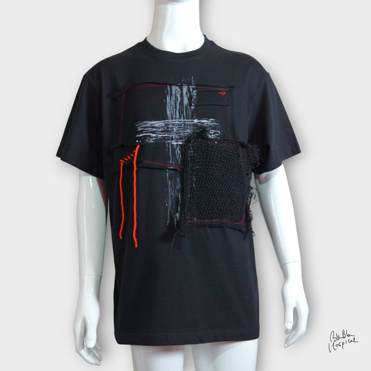 Black | Secret Cross Paint & Art Knit Patch Design T-shirt