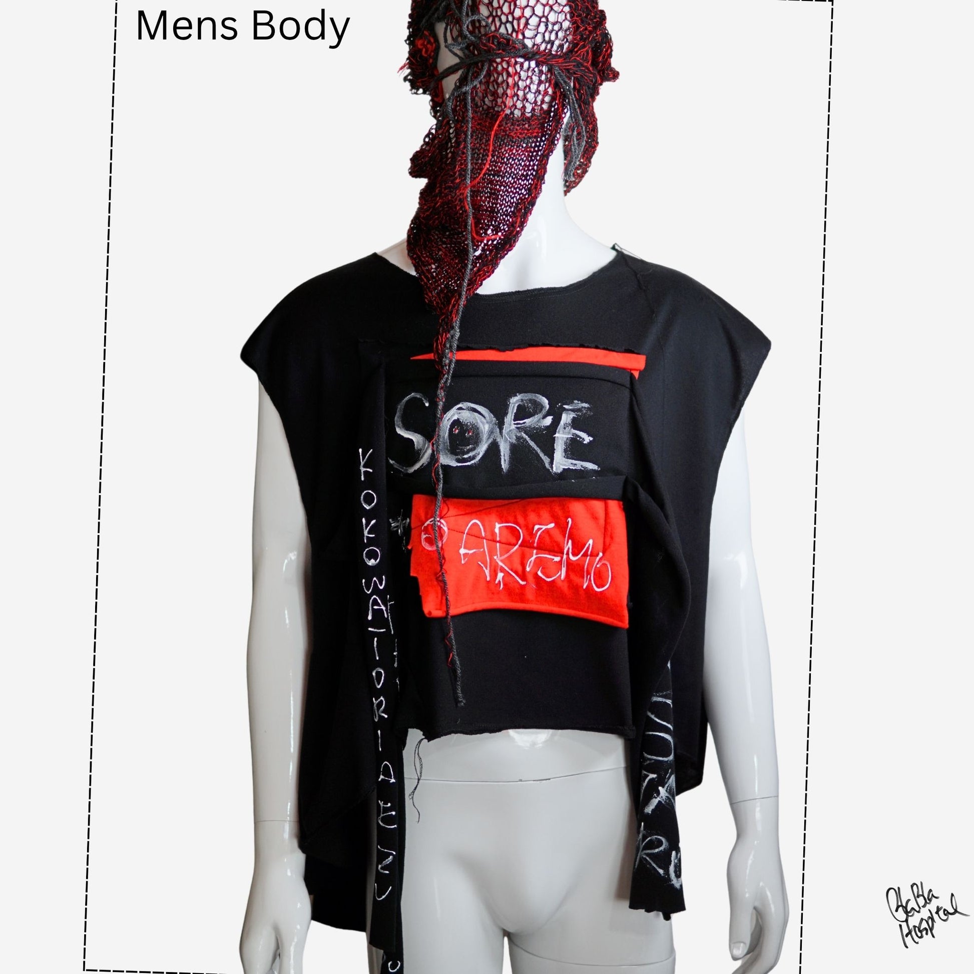 Face No.001 | Un-knitted Yarn thingamajig – Oversized Black Sleeveless Top