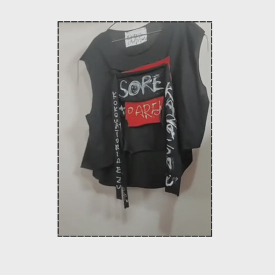 Face No.002 | Romaji writing – Oversized Black Sleeveless Top