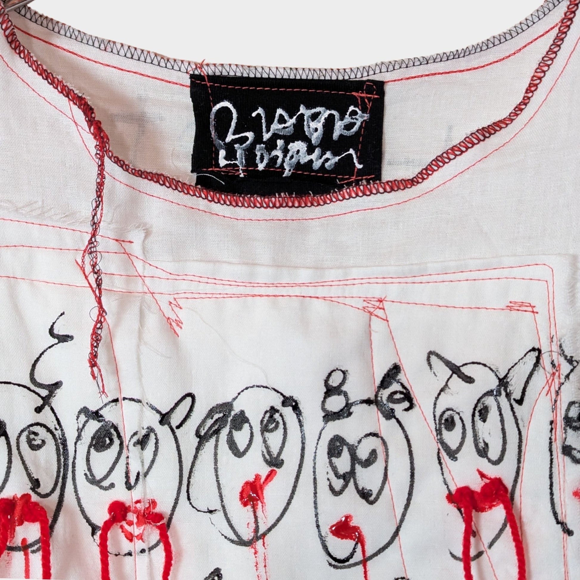 Red Air – No.02 | Sheer Organza Top with Art-Printed Patch – Layering Piece